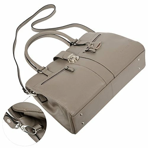 - Double handles are made of sturdy leather with perfect handle drop for easy carrying. Detachable shoulder strap is beautifully stitched leather with well-made fasteners; 4 bottom studs make this leather attache case stands upright on its own without falling over