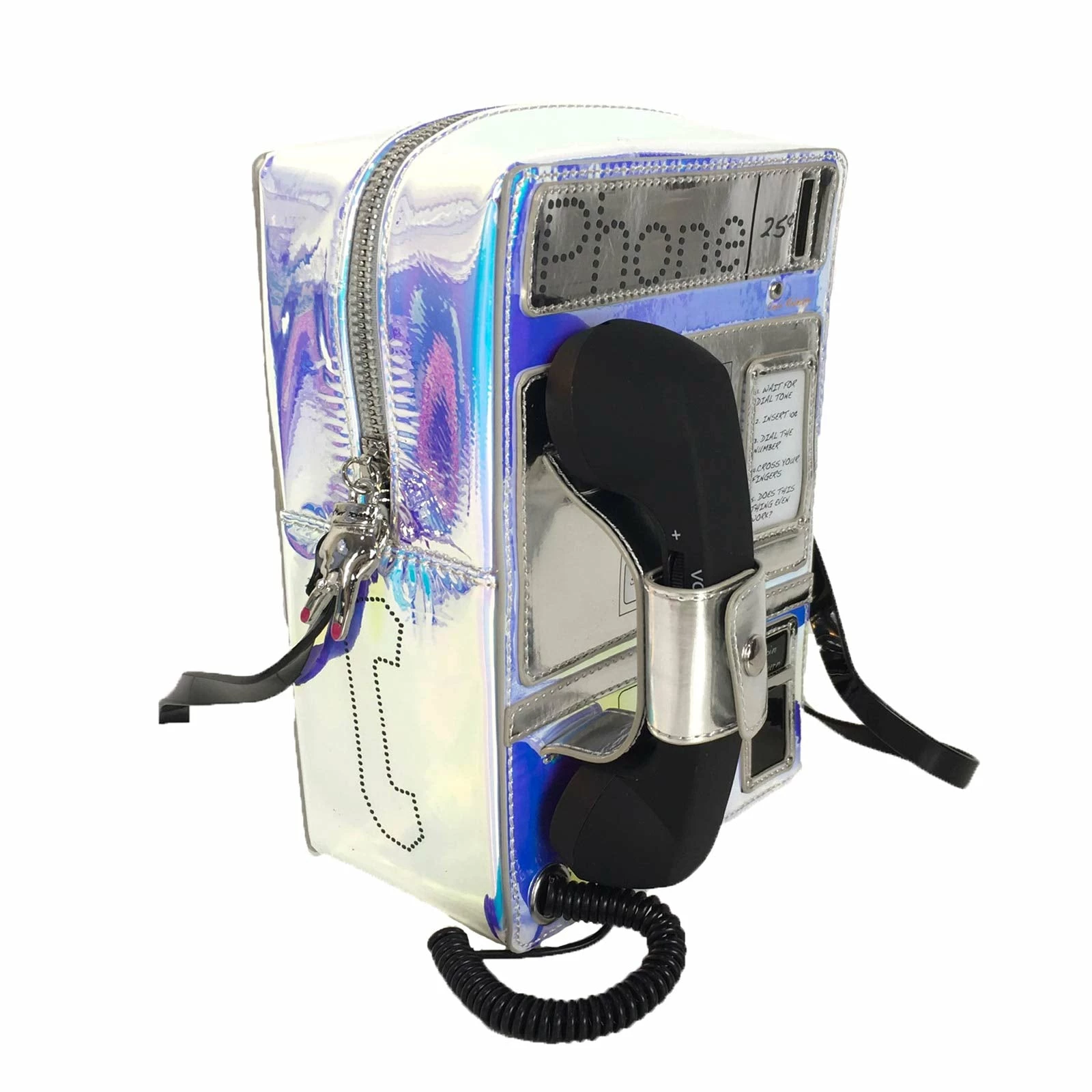 Details: The ultimate in wearable tech! Betsey’s Johnson Phone Tag kitsch crossbody is designed in a retro pay phone and features a functional telephone headset that can be plugged into any phone to talk!