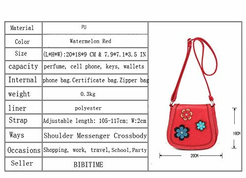 - Size(L*H*W): 20 * 18 * 9 CM & 7.87 * 7.09 * 3.54 IN – Adjustable shoulder strap Length: 105-117cm, Width: 2cm