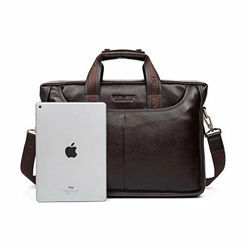 - STRUCTURE: This briefcase contains 1 big inner compartment, 1 cell phone pocket, 1 inner zipper pocket,2 pockets outside, one of with is zipper closure and another is magnetic snap closure. Secure and stylish single gusset construction expands for greater carrying capacity. The laptop bag easily holds your less than 16 inch laptop, iPad, iPhone, A4 file and other business things.
