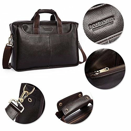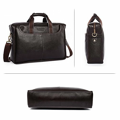 - HIGH QUALITY MATERIAL:The briefcase is made of high quality genuine cow leather with durable polyester lining. The hardware parts are made of retro brass alloy/gun-color alloy, these make the leather handbags more luxury. Zipper closure for your security.