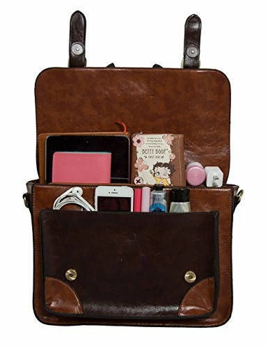 The ECOSUSI Vintage Messenger Purse Girl’s School Satchel is very attractive and could be used as a young girl’s school bag or as a brief case for a woman. It is very attractive, well made of soft faux leather. The dimensions are L12.8 x W3.8 x H10 inches. The bag has a very nice (and expensive) look and feel. The interior lining is very stylish and appears that it will hold up very well.