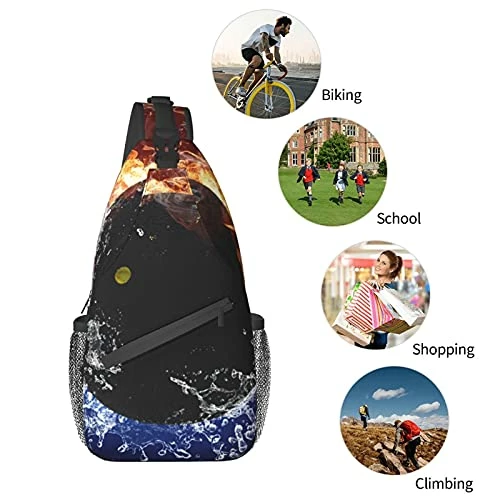 Details: Squash Ball In Fire Flames And Splashing Water Cross Chest Bag Diagonally