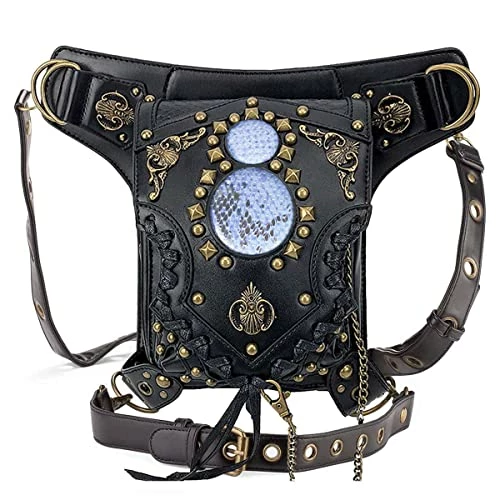 Gothic Waist Bag Fanny Pack Leather Steampunk Bag Side Bag Travel Purse Side Wallet Punk Rock Chain Leg Bag Crossbody Shoulder Messenger Bags Handbag Hip Holster Pouch for Women Girls