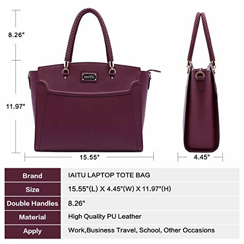 - LAPTOP BAG FOR WOMEN APPROX DIMENSIONS,15.55 inches long *11.97 inches deep *4.45 inches wide,fits most up to 13-15.6 inch laptop,Special braided handles drop approx 8.26inches,adjustable long strap approx 47.24″/120 cm for those times you need to be hands-free