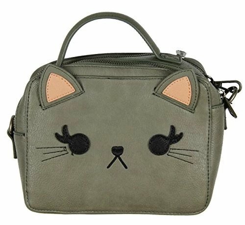 Details: This bag is purr-fect for storing your everyday essentials. It features a synthetic material with raised ear and cat face appliques. The bag features a crossbody strap, zipper closure and interior organizing pockets. Measures: 9″L X 6″W X 7″H