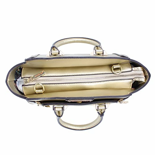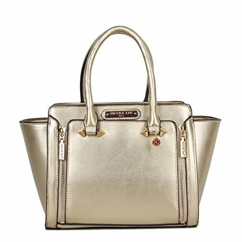 - Made of vegan leather. Front dual zip compartment. Gold-one hardwear. Dual top handles with nl authentic medallion.