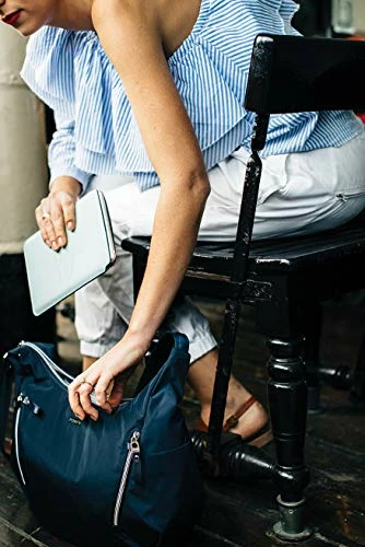 - DIMENSIONS, MATERIAL & – 9. 8″H x 13. 8″W x 5. 9″D, 0. 82 lbs. Made of soft, durable, water resistant & easy to wipe clean Polyester to ensure secure & long-lasting usage everyday & during weekends. Comes with a 5-year Pacsafe .