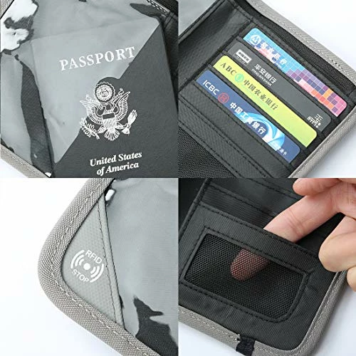 - FLEXIBLE ORGANIZATION:The travel passport wallet holder offer 4 credit card slot,1 mesh pocket for ID card, 2 larger slots for passports,1 coin/cellphone outside zipper pocket,1 full length zippered money compartment.It is an essential travel organizer with zippered security pockets to store your passports,credit and debit cards,coins,mobile tickets,cellphone,and keep your tickets crease-free and your passport undamaged as you travel.