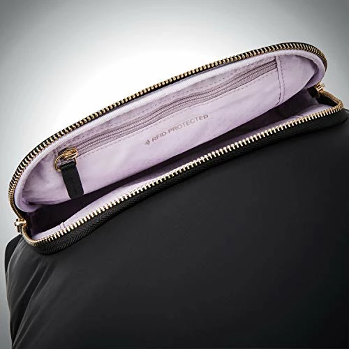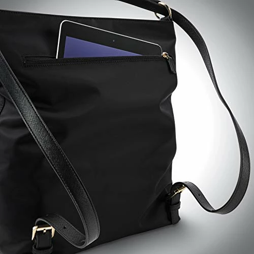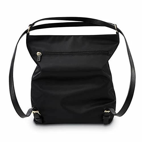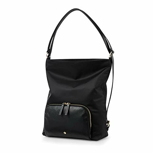 Details: Blink and you’ll miss the transition! The Convertible Hobo Backpack pulls double duty transitioning from a shoulder style to a backpack. Adjustable straps enhance the glide and go feature, making this the perfect companion travel piece.2-1 Convertibility• Hobo/Shoulder – adjust the straps to the desired length and carry comfortably on the shoulder• Backpack – pull the adjustable straps down and through the side rings to create the traditional backpack modeProduct Features• Water Resistant Fabric – body fabric features a water resistant coating for protection against the elements• Personal Organization Pocket – unique to this collection, the front pocket includes pen sleeves, and a slip pocket to hold all of your need-it-now business or personal essentials• RFID Data Vault – protected pocket safeguards your travel essentials from identity theft• 13.1″ Laptop Compatibility – main compartment fits most laptops up to 13.1″• Tablet Compatible – padded tablet pockets fits most tablets up to 9.7″• Luggage Loop – retractable feature fits over most Upright handles for hassle-free combination travel• Key FOB – secure and locate keys stress free• Weight: 1.24 lbs.• Dimensions: 14″ x 10.5″ x 4″