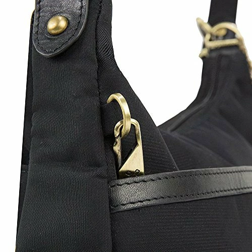Details: This elegant statement hobo is deceptively versatile as a travel or daily companion bag. Featuring an intelligent organization compartment with RFID blocking card and passport slots, an open top wall pocket, a zippered wall pocket. The easy access, locking front zipped pocket, and rear snap-close pocket are perfect of a phone or quick grab items. Anti-Theft features including slash-resistant construction, locking compartments, slash-resistant and locking shoulder strap will protect you and your valuables. Thoughtfully crafted twill with leather trim touch points and antique brass finished hardware has been designed for those who desire the best.
