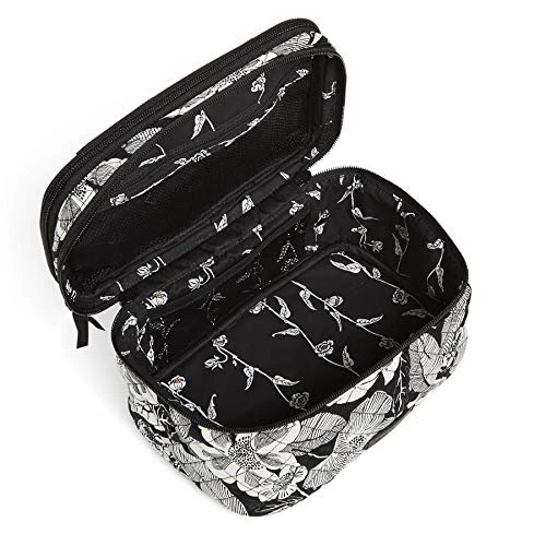 Details: Our quilted cotton is colorful and lightweight. 2 zippered compartments contain 3 elastic mesh pockets, 1 mesh zip pockets and 7 slips for makeup brushes. Zip closures. Brushes not included. Spot Clean. Vera Bradley make up bags will perform as a travel makeup bag, an at-home makeup organizer or makeup storage, a makeup bag for purse, and you can buy a few to create your own makeup bag set!
