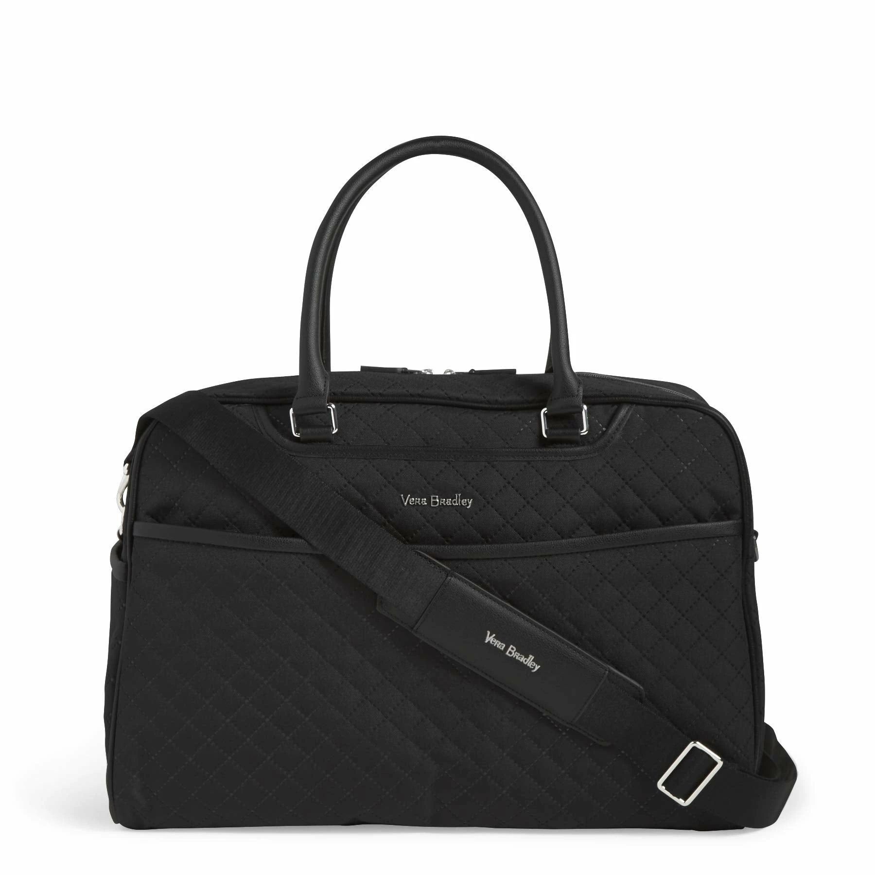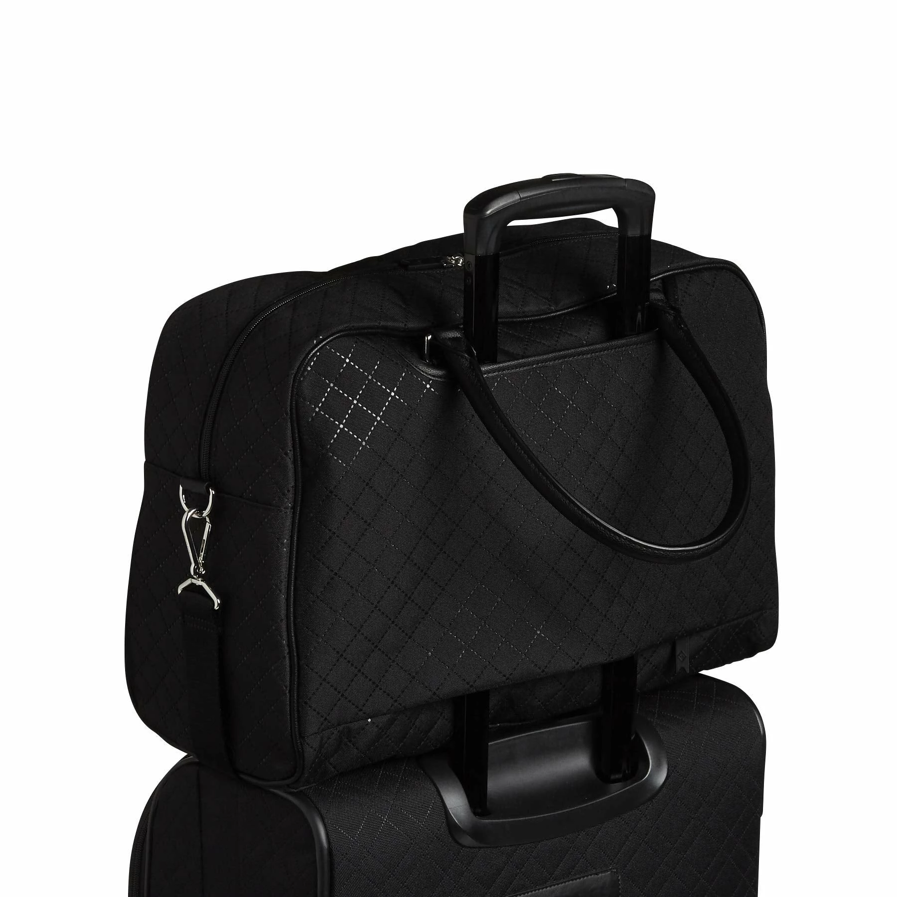 Details: Vera Bradley has thought of everything a great travel bag needs with the Iconic Weekender – the carryon compliant duffel to fit everything you need for your next adventure. The Iconic Weekender Travel Bag is the fashionable solution for storing your travel essentials, packing efficiently, and avoiding checked bag fees – measuring 12.5 inches high, 18.5 inches wide, and 7.5 inches in diameter. The interior of this spacious duffel features five mesh pockets. Skip the extra carry on and take advantage of these pockets to organize your cosmetics, hair products, jewelry, and other toiletries. The interior compartment fits about four to six outfits – perfect for the quick getaway. The exterior features one slip pocket, a charger pocket, and two zip pockets that are convenient for stowing your travel essentials – wallet, phone, boarding passes, reading material, and snacks. Keep your most important items at your fingertips with pockets positioned for quick access while keeping them soundly fastened for your flight. The Iconic Weekender Travel Bag keeps you hands-free so there is plenty of room for adventure. With a 6.5 inch strap drop and a 52.5 inch adjustable and removable strap, you can grab the dual straps on the go, throw over your shoulder for hands-free attention, or utilize the trolley sleeve to attach it to your luggage handle. Whether it’s a weekend getaway or a girl’s trip, Vera Bradley has designed this necessity for every traveler. When quality material meets precise craftsmanship, you get a bag made to last through all of life’s journeys. Care: Machine wash cold, gentle cycle, use only non-chlorine bleach as needed; line dry.