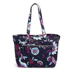 Details: Made from quilted, sleek, water-repellent polyester. Exterior features 1 slip, 1 zip, a pocket that unzips to convert to a trolley sleeve and a hidden slip at top edge. Interior features 1 zip pocket, 4 slip pockets, a padded laptop sleeve and 3 pen slips. Zip closure. Spot clean with gentle detergent. Rinse thoroughly, lay flat to dry.. Vera Bradley totes work great as a purse or a handbag, but we also offer a beach tote, a market grocery tote, a lunch tote, and a plethora of tote bag for women – we are sure to have a tote bag that fits your needs.