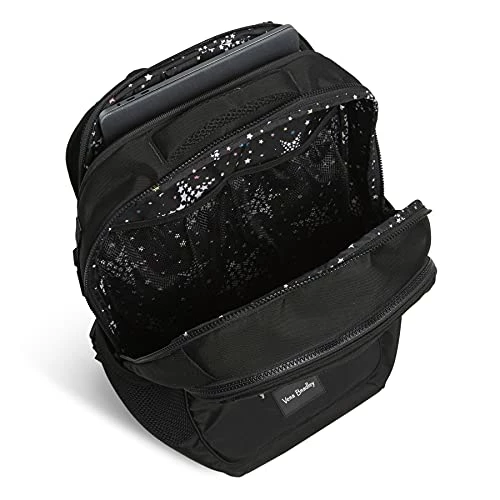 Details: Vera Bradley is your back to school destination Our back packs are perfect for back to school, work, and travel, including backpacks for men, backpacks for women, backpacks for girls, and backpacks for boys. Our bookbags have plenty of organization, whether you are shopping for a large backpack or a mini backpack.. ReActive is lightweight, durable, water-repellent and made from recycled PET water bottles. Exterior features two mesh side pockets, front zip pocket and back laptop zip pocket. Interior features an ID window, two slip pockets, three pen slip pockets. Main compartment features two mesh slip pockets and a mesh zip pocket. Webbing tab on outside of bag with carabiner. Padded laptop compartment. Zip closures. Accommodates up to a 15″ laptop. Capacity 25 L.. Spot clean with mild detergent and a soft, damp cloth, rinse thoroughly; lay flat to dry