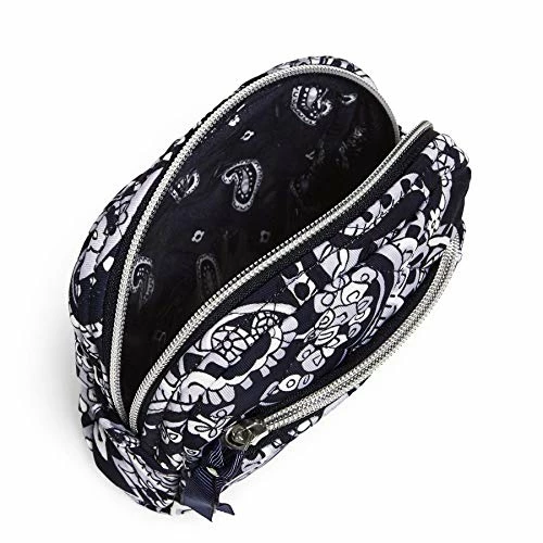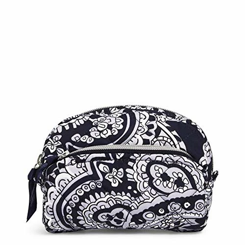 Details: Made from quilted, sleek, water-repellent polyester. Front zip pocket. Main compartment is pvc lined. Zip closures. Spot clean with mild detergent and a soft damp cloth. Rinse thoroughly. Lay flat to dry.. Vera Bradley make up bags will perform as a travel makeup bag, an at-home makeup organizer or makeup storage, a makeup bag for purse, and you can buy a few to create your own makeup bag set!